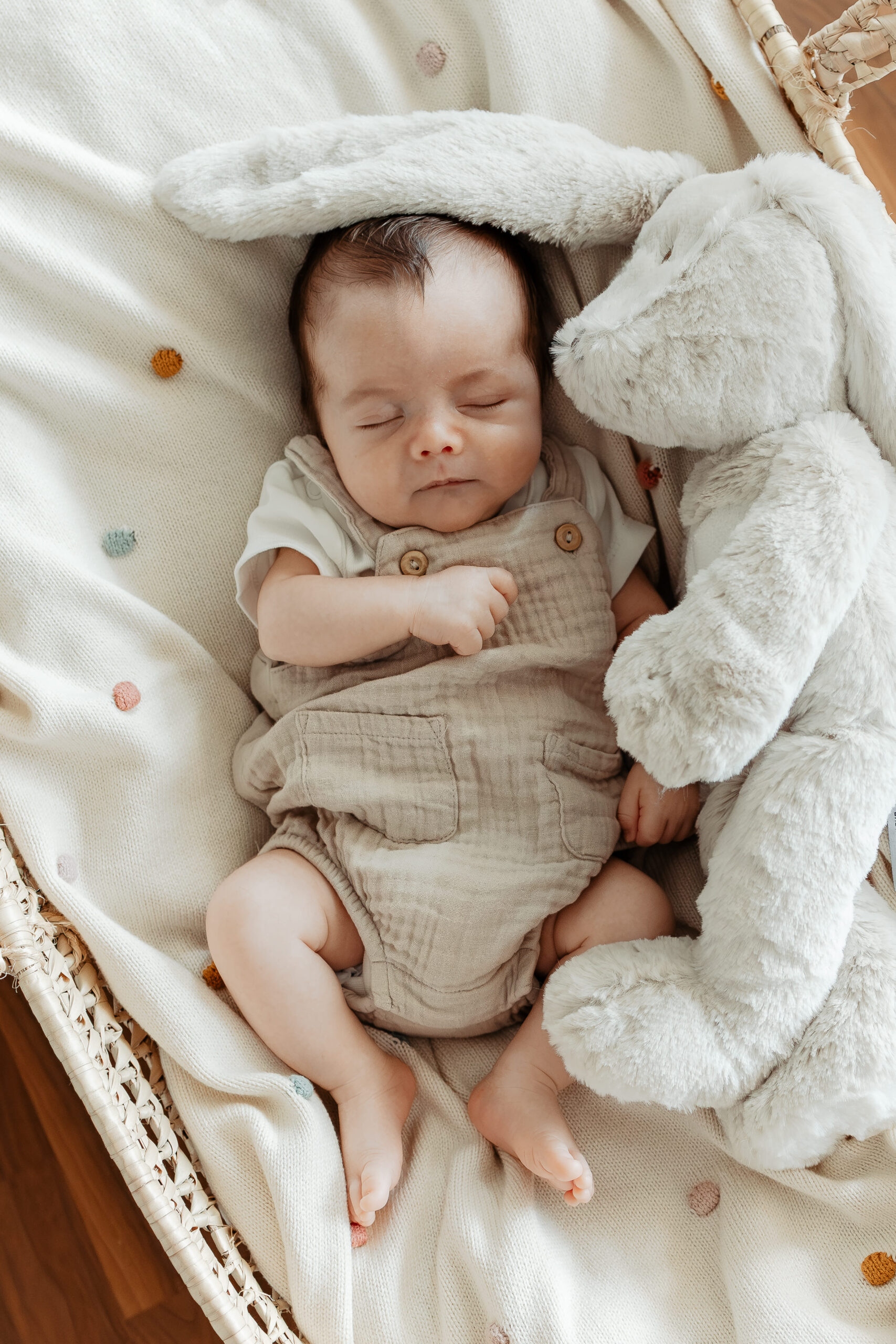 Bequeme Kleidung in Naturtönen sind für euer Baby ideal. Gerne bringe ich Baby-Kleidung, Decken, Tücher und Korb mit.